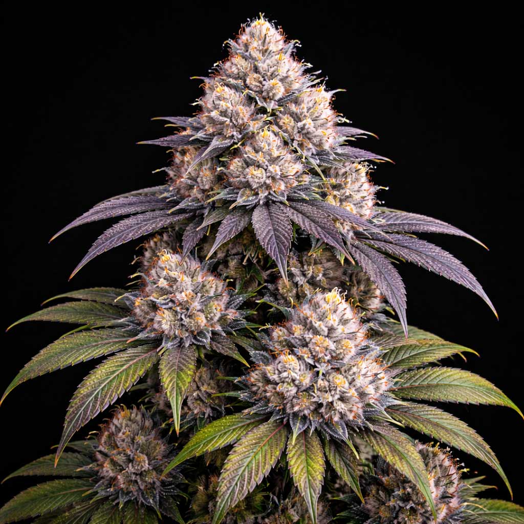 The flowers of White Cherry Gelato are widely recognized for their “platinum” sheen. The contrast between the dark, almost black purple leaves and the bright, silvery trichome layer creates a visual depth that is highly prized in the modern connoisseur market.